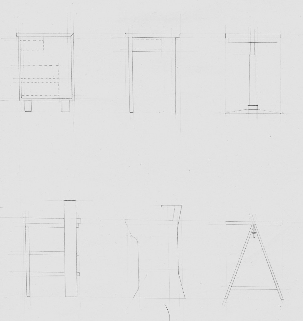 I explored different desks through section drawings ( not to scale ) as I felt that they were a very important feature for a writer. As this would be where they spend most of their time. By doing these drawings I discovered that I preferred the simplistic styles to any others. I felt that these would not distract from the building itself.