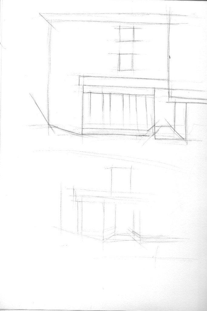 Today we went and looked at the site where the building we are designing would be placed. We did a few continuous line drawings to get a feel for the surrounding buildings. It encouraged me to start thinking about how I wanted it to respond to its surroundings while investigating the light aspect, a main focus of the project. It was good to see where the sunlight was coming from at that time of day. I also found it useful to get a feel for the natural and unnatural occurring shapes around the site as this can be a good reference point when designing.